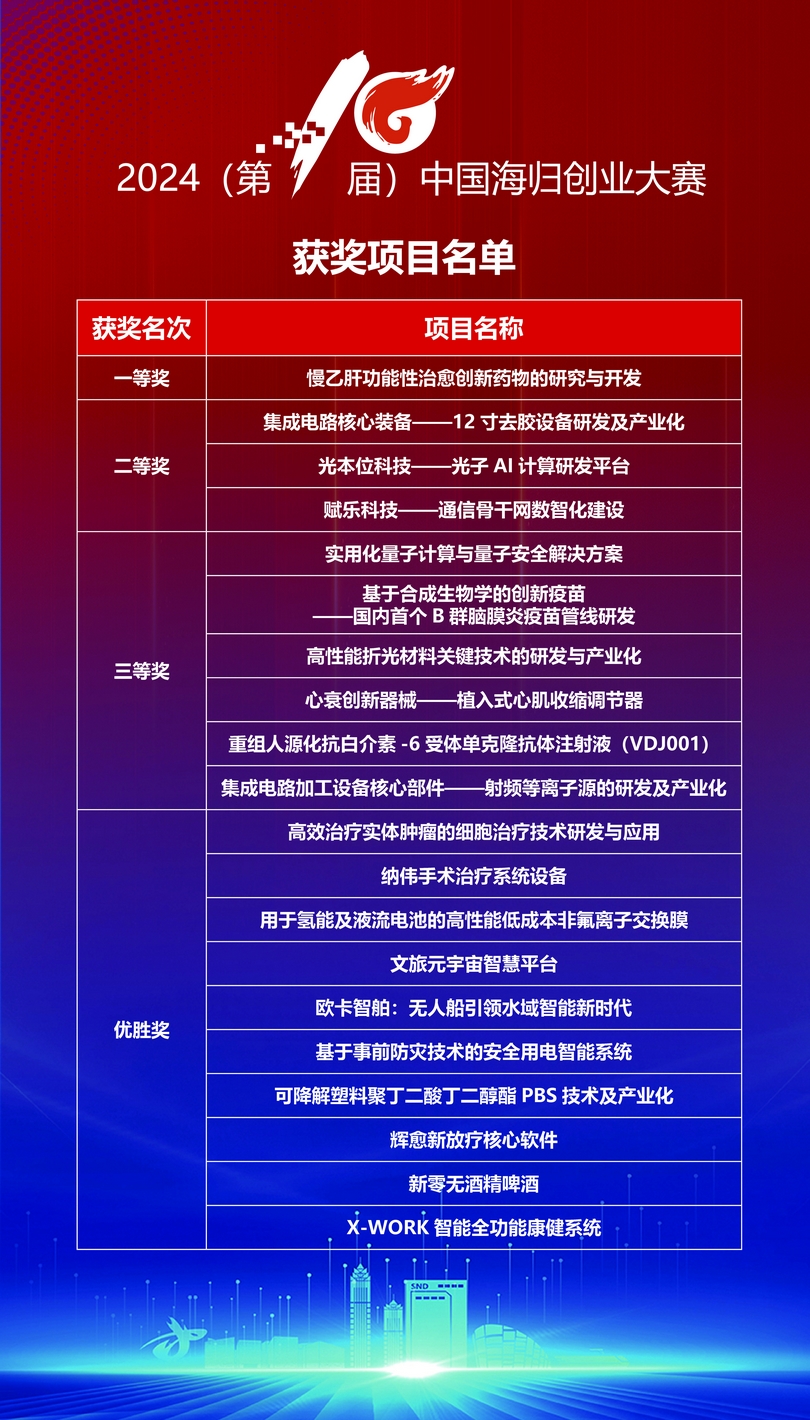 2024(第10屆)中國海歸創業大賽貫徹落實黨的二十大和中央人才工作會議精神,堅持融合共享、開放創新,充分發揮協同作用和各方優勢,由留創園工委會聯合江蘇省、蘇州市8家單位共同提供組織服務保障,北京、包頭、上海、南京、寧波、廈門、濟南、煙臺、長沙、珠海、東莞、西安、昆山、丹陽等地20多家單位協辦,全國300多家創業園區、投資機構等企事業單位和高校參與賽事,在政策、空間、產業、資本、孵化服務網絡等方面配置優質資源。大賽聚焦“人才+科創+產業+金融”,組建規模10億元專項基金,撬動社會資本給予參賽項目優先投資支持;組織“海創中國”英才行及專場對接洽談活動,推動人才項目孵化、科技成果轉化、金融投資對接、產業商業合作;設立中國海歸創業大賽服務基地,為優秀參賽項目團隊開辟人才、資金、場地等綠色通道,提供創業全生命周期服務。同時,通過“海創中國”導師行活動和常態化機制,為參賽項目提供創業輔導和陪伴式服務。
