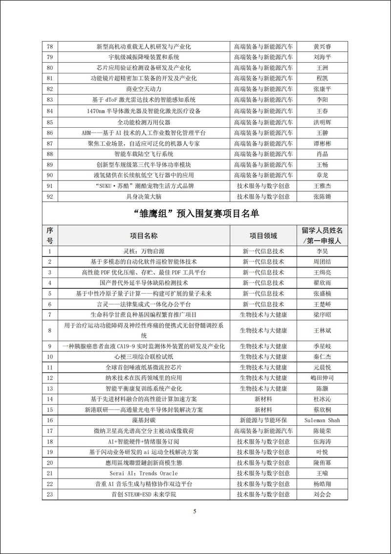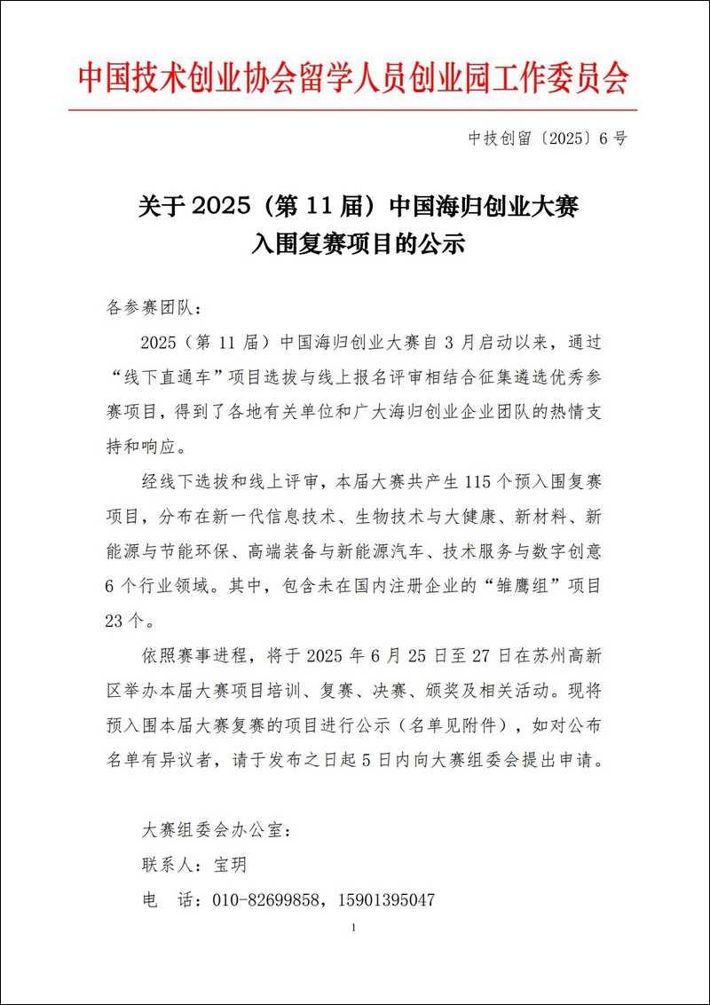 關于2025(第11屆)中國海歸創業大賽入圍復賽項目的公示
